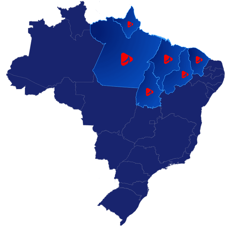 Estamos presentes nos estados Tocantins, Pará, Maranhão, Piauí, Amapá, Ceará e continuamente expandindo nossa rede para novas regiões.